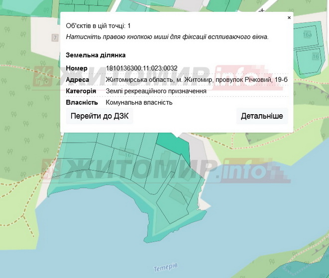 В реєстрі судових рішень Житомир.info вдалося знайти позови до дев’яти осіб щодо земельних ділянок на провулку Річковому, 19-б, де раніше була човнова станція. Всі справи розглядає Богунський районний суд м.Житомира.