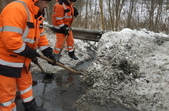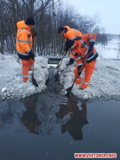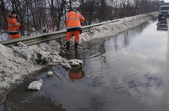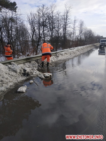 «Стрімке танення снігів, зумовлене «плюсовими» показниками термометрів упродовж доби, перезволожує дорожнє покриття. Роботи з розчищення дощоприймачів, водопропускних труб, узбіч тривають цілодобово. Для оперативного виконання робіт зі спуску води з доріг задіяна спецтехніка, дорожники працюють і вручну», - йдеться у повідомленні.