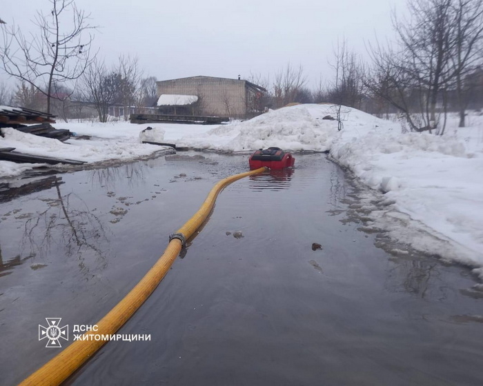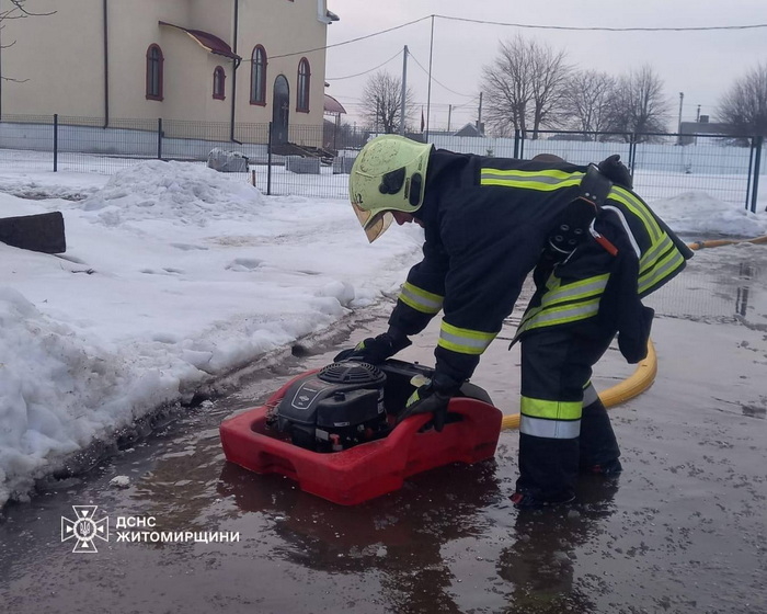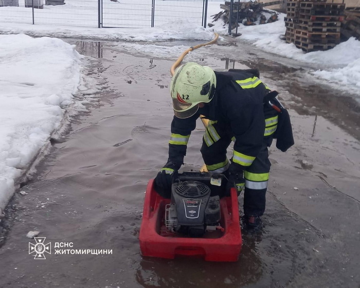 У місті Овруч 24 лютого рятувальники відкачували воду з прибудинкової території.
