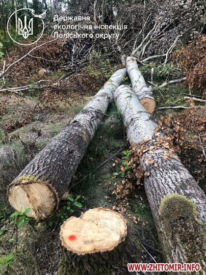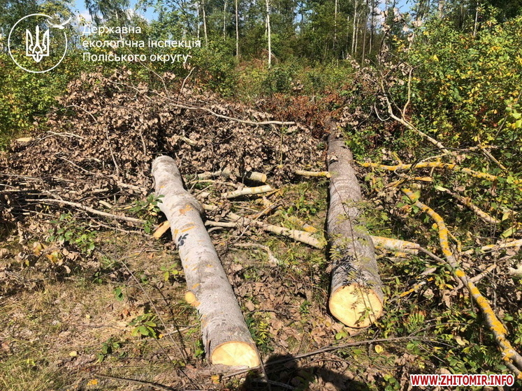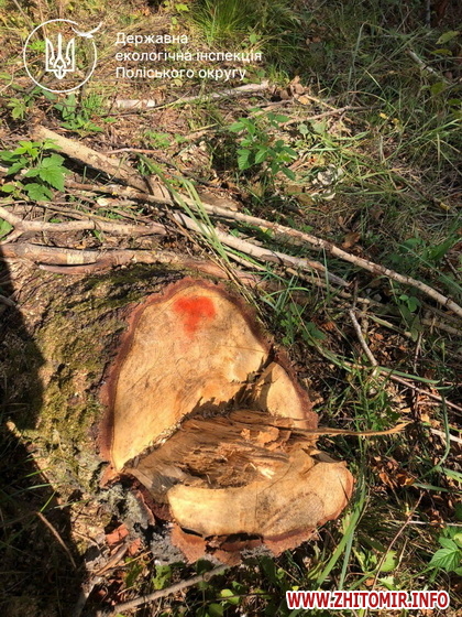 «Влітку 2022 року до Державної екологічної інспекції Поліського округу надійшло звернення від Хорошівської селищної ради щодо самовільної порубки дерев за межами села Дворище. Державні інспектори з охорони навколишнього природного середовища Поліського округу здійснили виїзд на місце, зазначене у зверненні. На земельній ділянці площею близько 3,2 га було встановлено факт незаконної порубки 286 дерев різних порід», - йдеться у повідомленні.