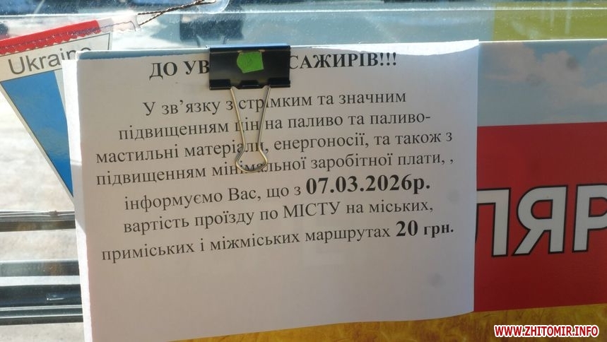 Із 7 березня проїзд у деяких приміських автобусах подорожчає. Оголошення про нові тарифи журналісти Житомир.info побачили у автобусах №108, №126, №128, та №115.