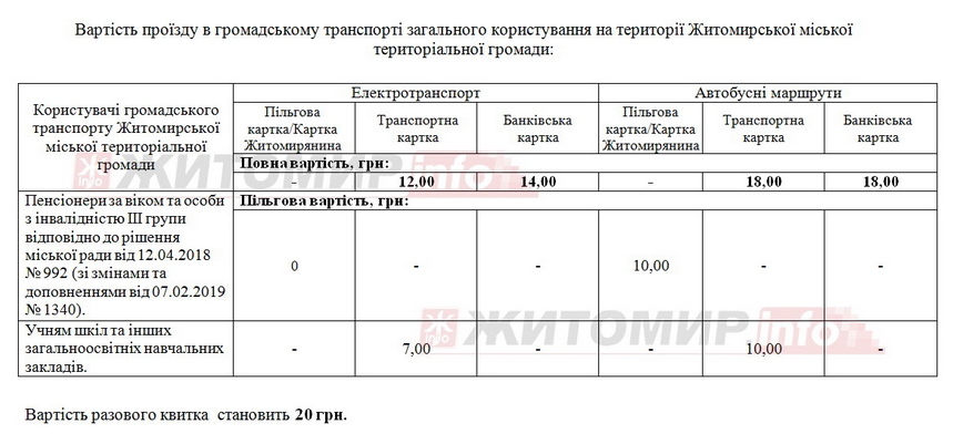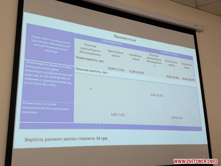 Нагадаємо, 5 березня Житомирська міськрада повідомила, що робоча група з питань транспорту вивчає обґрунтованість витрат перевізників, які хочуть підвищення вартості проїзду. 9 березня міська рада нагадала, що виконком поки не ухвалював жодних рішень щодо підвищення вартості проїзду в громадському транспорті.