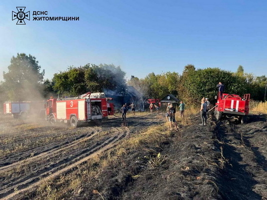«За минулу добу на території Житомирської області виникли 9 пожеж в екосистемах, до ліквідації яких залучалися рятувальники. Вогонь охопив майже 7 гектарів території. На жаль, не обійшлося без збитків. Окрім сухої рослинності, полум’я знищило дві господарчі споруди. У селі Дружба Коростенського району загоряння сухої трави швидко поширилося та перекинулося на господарчу будівлю — її повністю знищено», - йдеться в повідомленні.