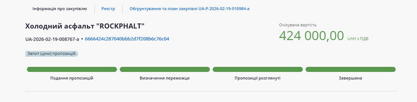 Скриншот тендеру, розміщеного на платформі закупівель Prozorro