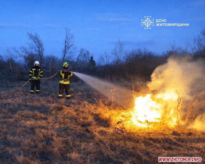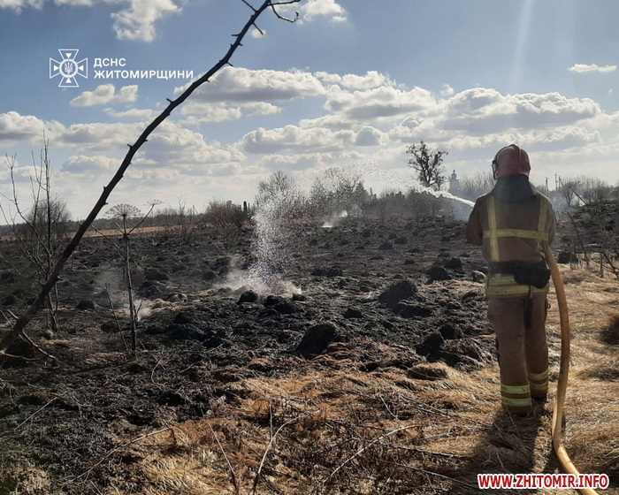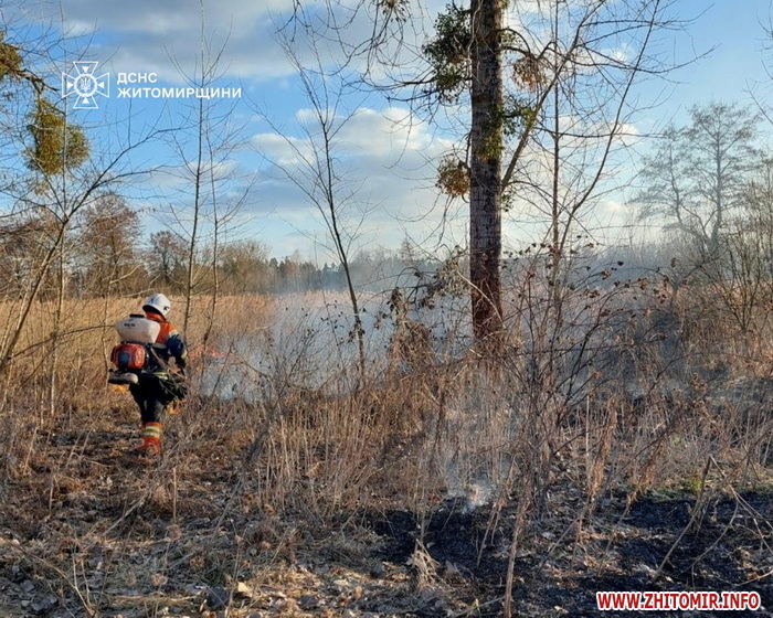 Як повідомляв Житомир.info, 16 березня 2026 року в екосистемах обалсті сталися 9 пожеж, які знищили дві господарські споруди, а на Коростенщині вогонь випалив 2,5 га сухої трави. Крім того, штраф отримала жінка, яка біля дороги спалювала суху траву.