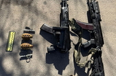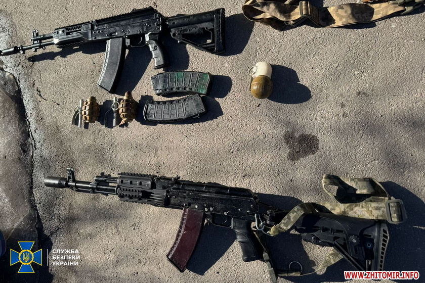 «Серед вилученого – дві ручні осколкові гранати Ф-1, протипіхотна осколкова ударно-дистанційна граната РГН та два автомати Калашникова АК-12 і АК-74. Один із них – новий «домодернізований» автомат російського виробництва, який нині перебуває на озброєнні зс рф», - СБУ.