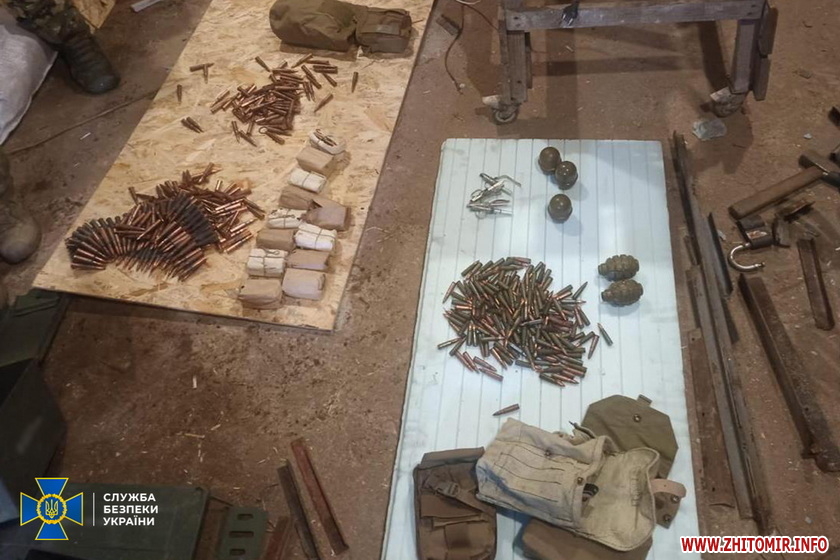 Під час обшуку сховка додатково вилучено три гранати РГД-5 та дві гранати Ф-1 із підривачами, а також майже 700 набоїв до стрілецької зброї.