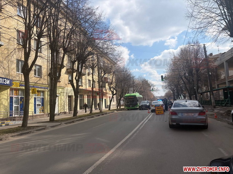 Нагадаємо, вдень 18 березня на вулиці Київській у Житомирі зіткнулись Chevrolet та Volkswagen, на місці працювали медики, слідчі поліції та патрульні.