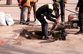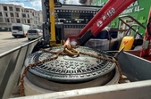 «На сьогоднішній день ми маємо проблему в Житомирі з люками, які вже є досить старі, і колодязі, які побудовані ще більш ніж 30–40–50 років тому. Навіть на вулицях, де проводиться поточний ремонт із заміною верхнього шару асфальтобетонного покриття і встановленням облаштування люків, вони однаково провалюються. Є компанія в Україні, яка була у нас на минулому тижні, вони запропонували свої рішення. Ми зараз пробуємо в тестовому режимі за рахунок цієї компанії на вулиці Театральній. Це буде встановлено люк, саме нивелюючий, з навантаженням, який буде витримувати більш ніж 40 тонн, який знімає 50% навантаження з плити, колодязя, на якому він побудований. Якщо це працює і дійсно підтвердяться їхні показники, то в подальшому ми будемо використовувати і закладати ці технології в поточному ремонті та в заміні проблемних ділянок, де у нас є провалені люки, плити і колодязі. На сьогодні цей люк коштує від 10 до 16 тисяч гривень, плюс плита перекриття, плюс сама робота. Зараз ми робимо демонтаж існуючого люка, доберемося до колодязя. Вони регламентують, що за пів години виставлять люк, і через пів години можна буде по ньому навіть рухатись транспортом», – розповів заступник Житомирського міського голови Олександр Шевчук.