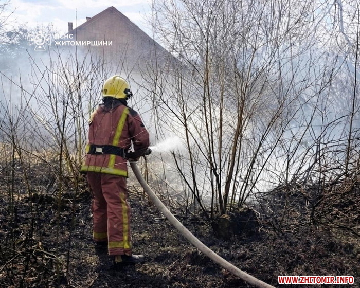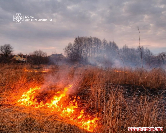 Як повідомляв Житомир.info, станом на 19 березня 2026 року з моменту підвищення температури в Житомирській області сталося 85 пожеж в екосистемах, вогонь пройшов понад 35 га територій. Зокрема, пообіді 19 березня до Служби порятунку «101» надійшло повідомлення про пожежу господарської споруди в с. Малий Дивлин Коростенського району, вогонь на яку перекинувся з сухої трави.
