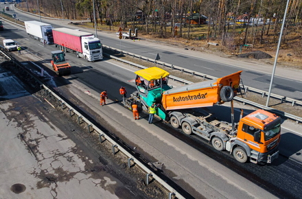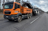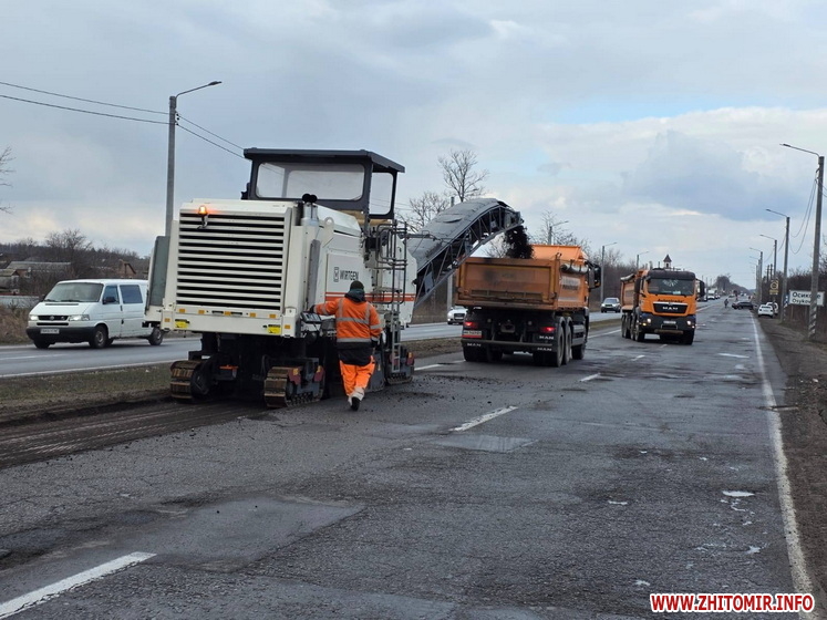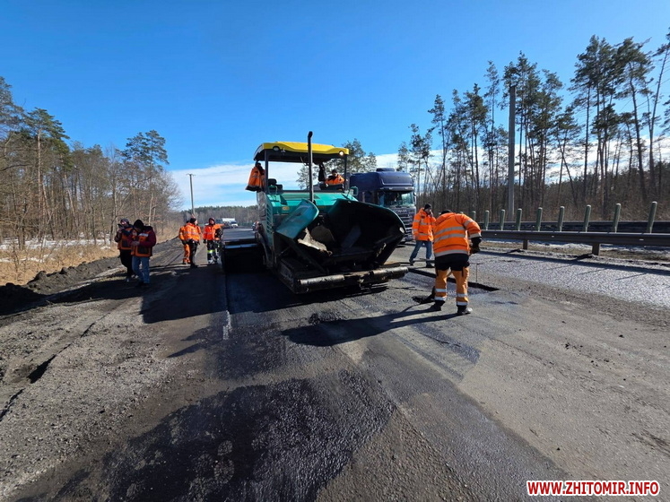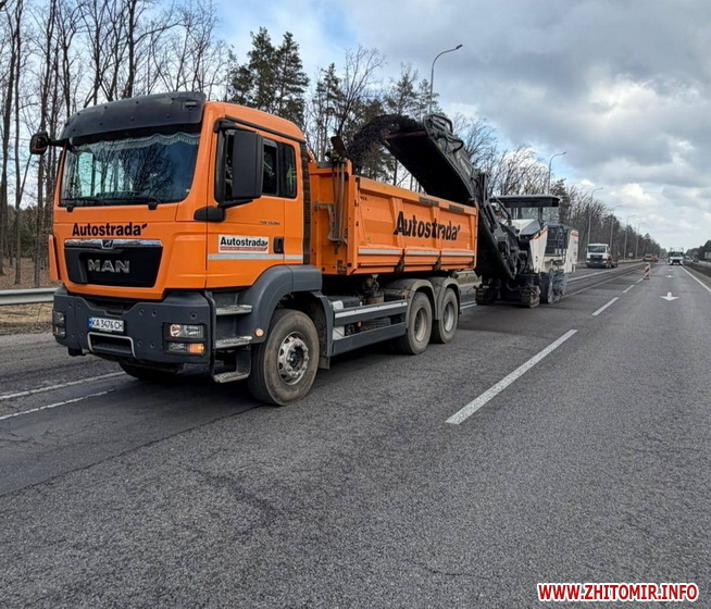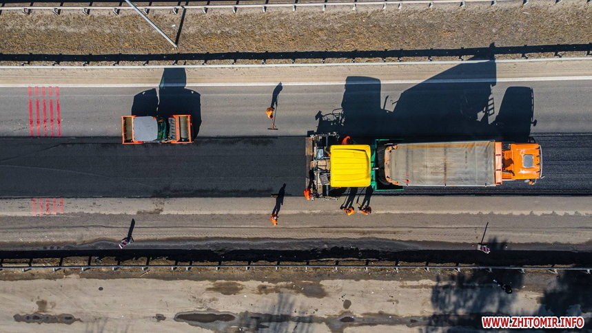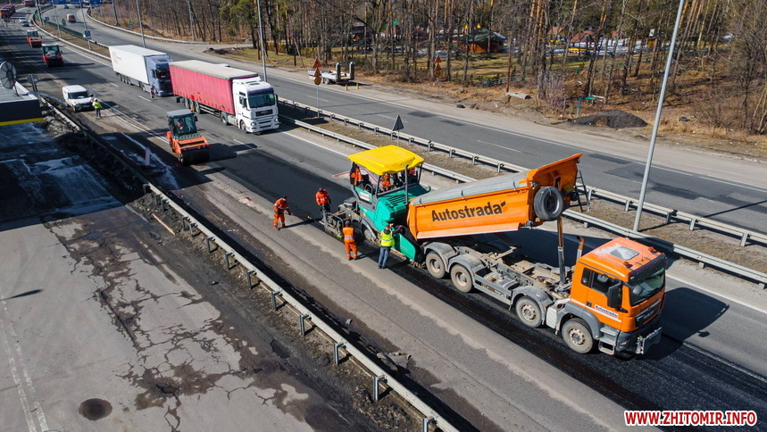 Нагадаємо, 19 березня між Бердичевом і Житомиром ремонтували дорогу. Йдеться про ліву смугу для руху транспорту автошляху М-21 Виступовичі - Житомир - Могилів-Подільський, а саме: між селами Осикове та Сінгури. Тут зрізали зношене покриття для укладання нового асфальту, а після виконання всіх підготовчих робіт планували влаштувати вирівнюючий шар з гарячого асфальтобетону.