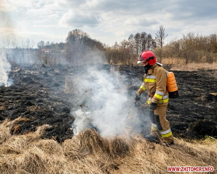 Як повідомляв Житомир.info, за добу 26 березня 2026 року в Житомирській області сталися 25 загорянь минулорічного сухостою, вогонь пройшов майже 22 га території. Одна з них сталася неподалік Житомира й через вітер могла перекинутися на приватні будинки.