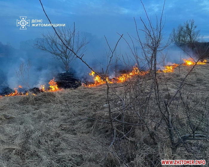 Нагадаємо, протягом доби 27 березня у Житомирській області рятувальники ліквідували 15 пожеж сухої трави: в одному з випадків вогонь загрожував перекинутись на житлові будинки і господарчі споруди.