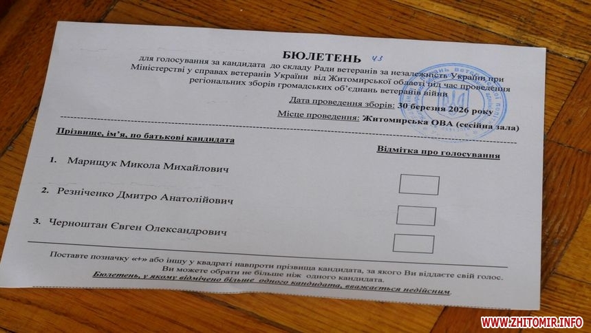 30 березня у Житомирській ОВА обирали представника від області до складу Ради ветеранів війни за незалежність України.