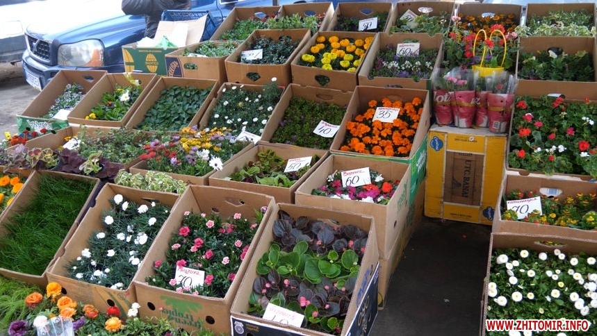 Поблизу Житнього ринку 2 квітня тротуар заполонили саджанці гвоздик, чорнобривців та бегонії. Зазначимо, що у місті діє заборона на торгівлю штучними квітами. Продавці кажуть, попит на живі квіти є, а от штучні вже не актуальні.