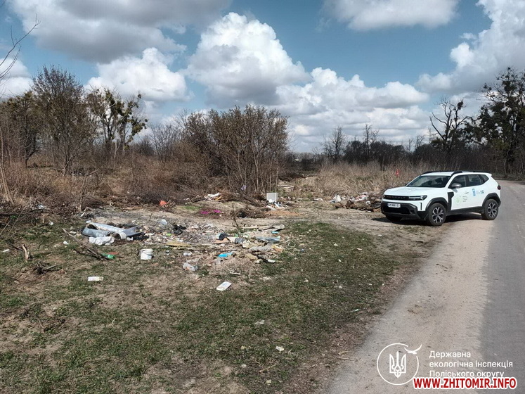 Як повідомляв Житомир.info, під час патрулювань з 2 по 8 березня 2026 року екоінспектори ПЕК №1 виявили несанкціоноване сміттєзвалище біля під'їзної дороги до полігону твердих побутових відходів Житомира, а також два сміттєзвалища неподалік села Баришівка Березівської громади.