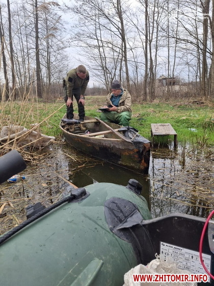 «3 квітня 2026 року державними інспекторами з охорони навколишнього природного середовища Поліського округу на території Бердичівського району Житомирської області на річці Гнилоп’ять, в межах села Скраглівка, виявлено громадянина, який у період дії нерестової заборони здійснював вилов водних біоресурсів із використанням забороненого знаряддя лову - сітки, перебуваючи у власному дерев’яному човні. В результаті незаконних дій водні біоресурси не були добуті, однак сам факт застосування забороненого знаряддя лову під час нересту є порушенням вимог Правил любительського рибальства та кваліфікується як грубе порушення», - йдеться в повідомленні.