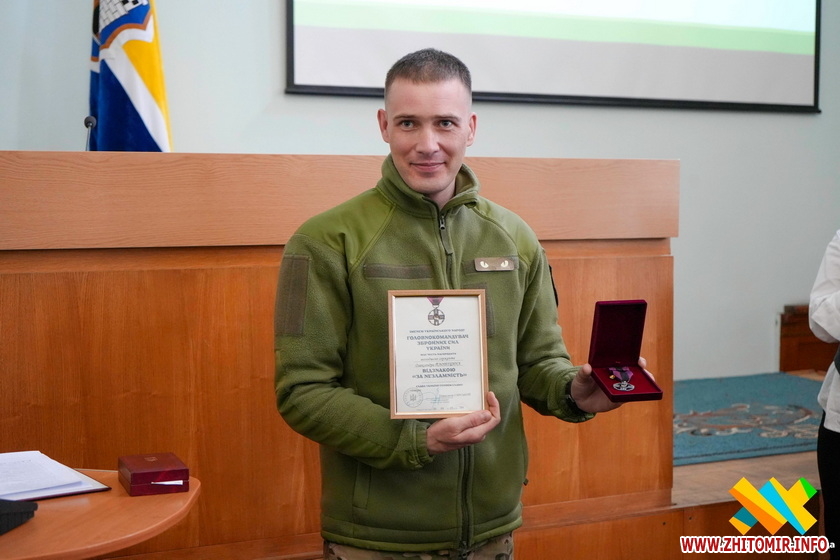 У Житомирській міській раді воїну Олександру Плотіцину вручили орден «За мужність» ІІІ ступеня та відзнаку «За незламність». Захисник повернувся з російського полону, у якому був 32 місяці, у серпні 2025 року.