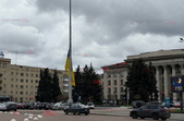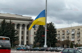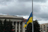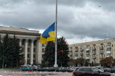 У Житомирі через сильний вітер приспустили прапор на майдані Соборному.