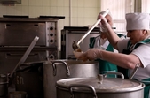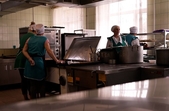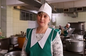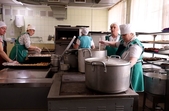 «Наперед ми нічого не готуємо. Сьогодні на сніданок була гречка, смажена риба, салат із свіжої капусти – все готувала зранку: нарізала рибу, готувала гречку. Так само чай з лимоном був, заварку зранку робила, це все робиться на початку робочого дня. Заздалегідь ми не робимо жодних заготовок, а тим паче не готуємо їжу», – розповідає кухарка Анна Шміт.