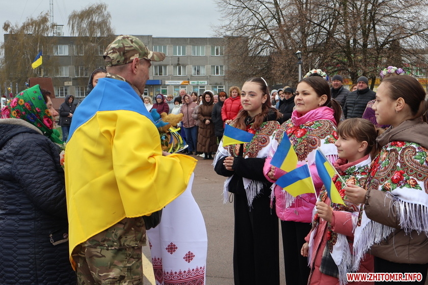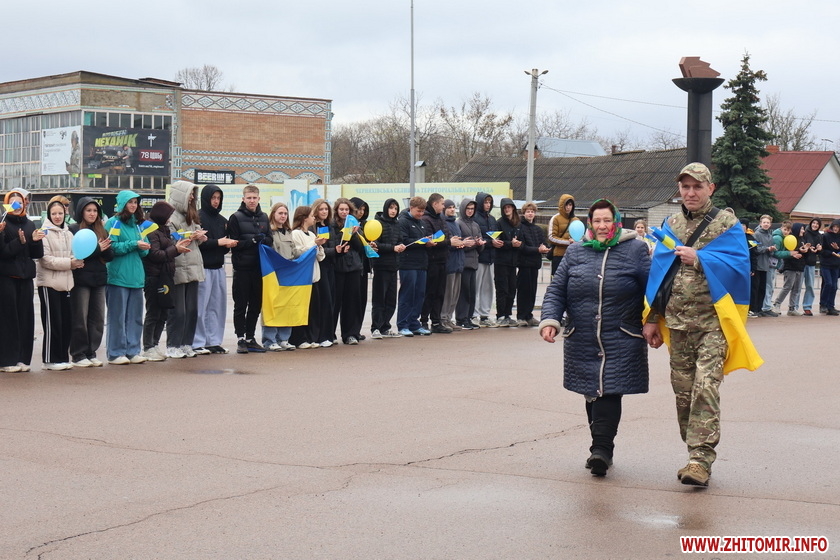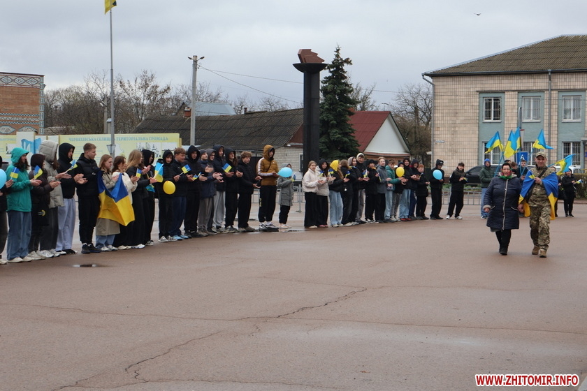 На центральній площі Черняхова зібралися мешканці – керівники громади і працівники селищної ради, рідні, друзі, школярі і освітяни, небайдужі жителі –всі, для кого ця зустріч стала справжнім символом незламності духу та сили нашої єдності.