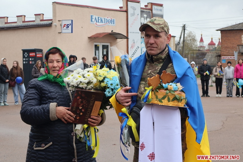 «Заступник селищного голови Андрій Ющенко висловив щиру вдячність воїну за його службу та стійкість, а маму захисника привітав із найочікуванішою подією для родини і громади - поверненням сина до рідного дому. Сам воїн подякував усім за підтримку та теплий прийом», - Черняхівська селищна рада.