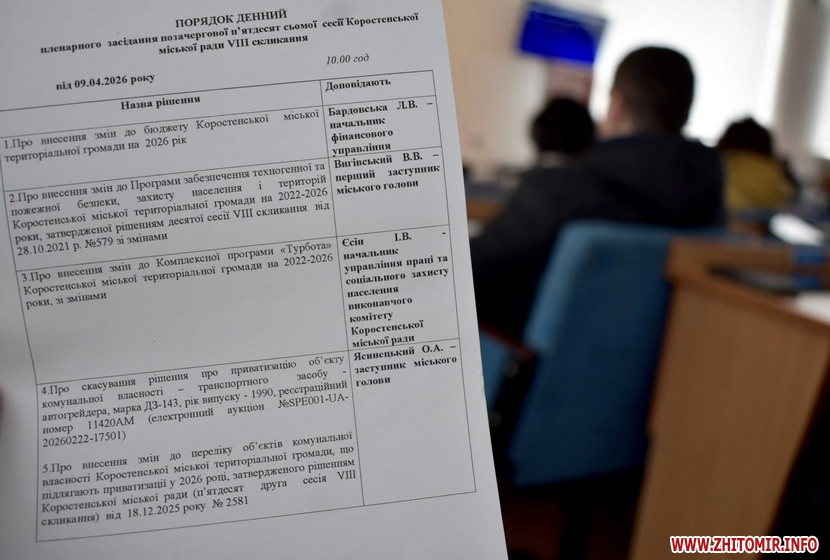 Про це 9 квітня повідомила пресслужба Коростеснької міської ради.