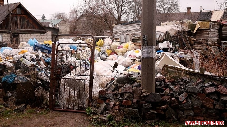 У Житомирі щонайменше за двома адресами мешканці будинків перетворили свої подвір'я на сміттєзвалища. На сморід від сміття скаржаться місцеві мешканці.