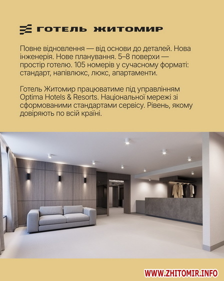 Незабаром готель «Житомир» відкриє свої двері для гостей міста.