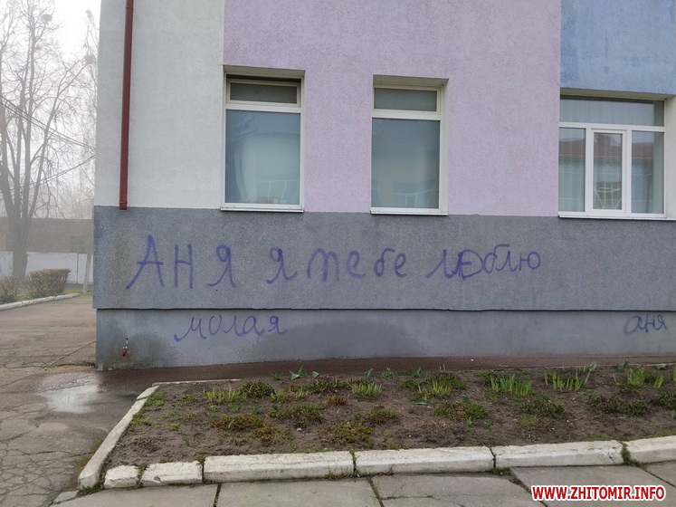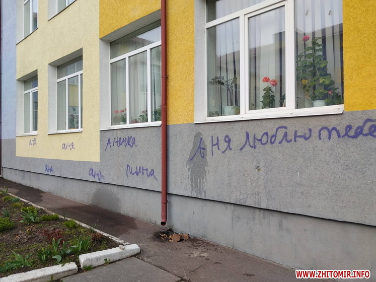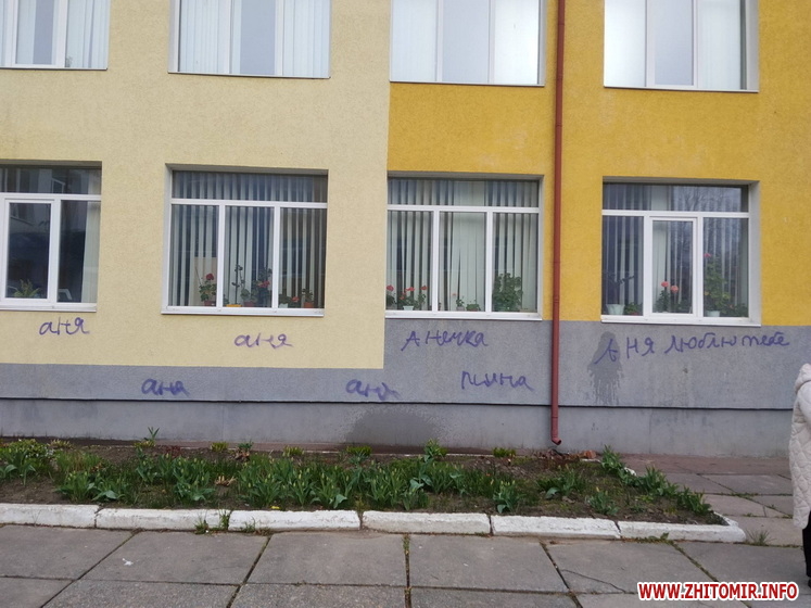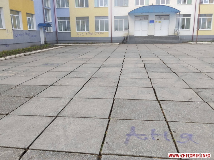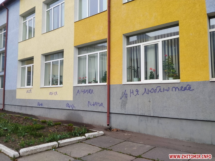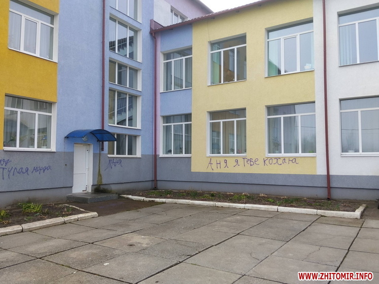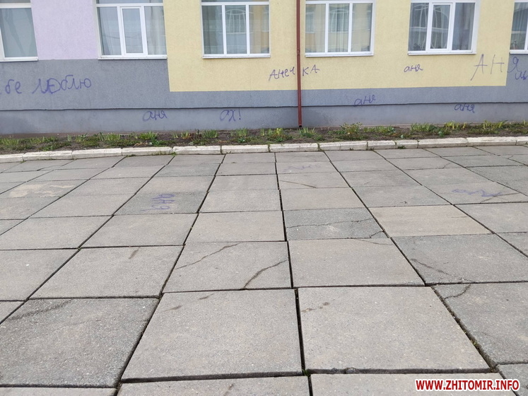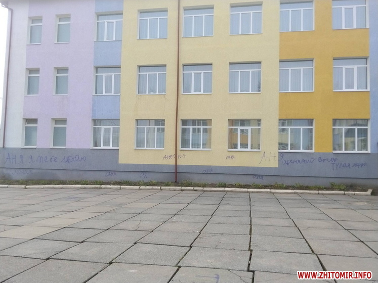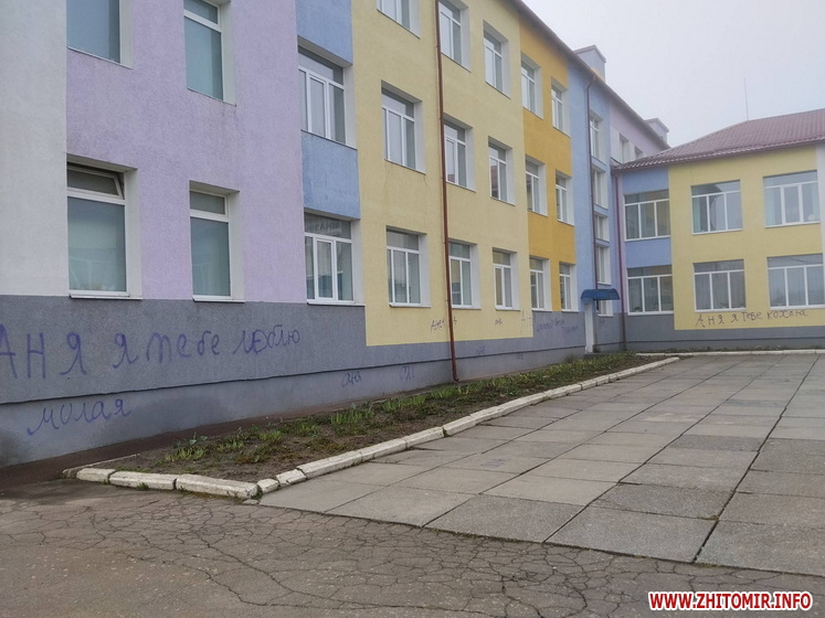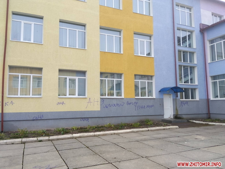 Невідомі розмалювали стіни ліцею у селищі Хорошів. Також помальована плитка біля навчального закладу. Вандалів розшукують, адміністрація ліцею звернулася до поліції.