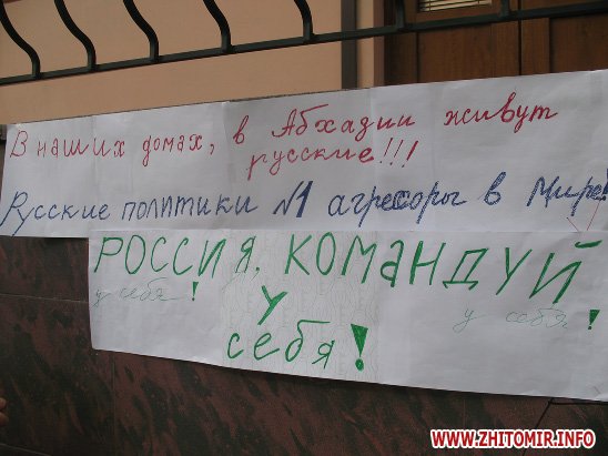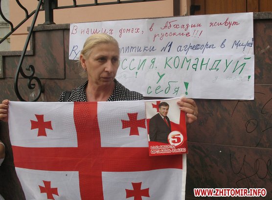 Сегодня в Житомире около пол пятого возле почетного консульства Грузии в центре Житомира представители грузинской диаспоры начали пикет в поддержку своих соотечественников. Возле консульства собрались женщины и дети: « У нас в Грузии остались родственники- дети, мужья, мы из Зугдиди. Этот город сегодня уже оккупирован русскими войсками. Город практически пустой. Большинство женщин и детей эвакуированы»,- говорят женщины.