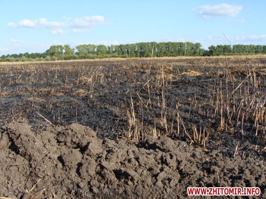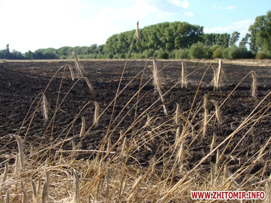 В Житомирской области горело поле. Крестьяне уверены, в пшеницу попали военные. Поле загорелось во время учений военных, когда на соседнем полигоне свое мастерство оттачивали военнослужащие.