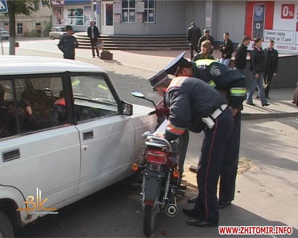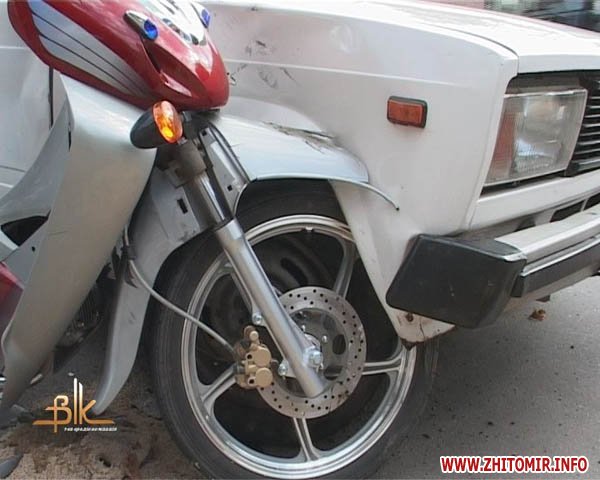 В Бердичеві втручання лікарів швидкої допомоги знадобилося трицятидворічному учаснику дорожньо-транстпортної пригоди, яка сталася поблизу торгового центру «ПАССАЖ», що по вулиці Свердлова. В результаті аварії за участю автомобіля і мотоскутера, водія останнього було госпіталізовано із закритим переломом коліна, повідомляє ВІК.