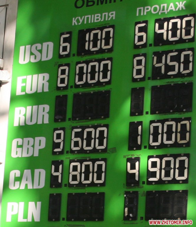 Совершенно нереальная ситуация с валютой в Житомире. Если еще вчера доллар бил рекорды, перешагнув рубеж в 7 гривен, а утром сегодня некоторые банки почему-то спешили с началом торговли валютой до полудня, то уже сейчас цены доллара в обменниках города вызвали шок. Особенно у тех горожан, кто надеялся за счет старых запасов и сбережений поправить материальное положение, продав зеленые американские дензнаки по самому выгодному курсу….