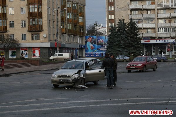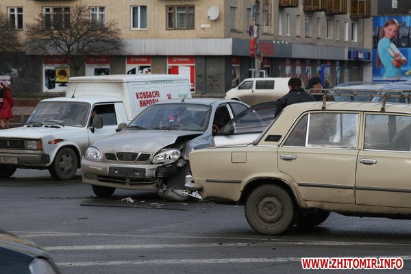 В самом центре Житомира, точнее на Соборной площади, произошла авария, столкнулись два автомобиля «Ланос» и «Опель». Из-за этого происшествия на площади образовалась довольно крупная пробка. Как утверждают очевидцы аварии, виноват водитель такси-«Ланос», поскольку он двигаясь по улице Рыльского (со стороны дома правосудия), по правилам должен был пропустить автомобиль «Опель», но свидетели уверены, что «Опель» ехал на повышенной скорости. Автомобили простояли посреди площади около двух часов, очевидно, ожидая приезда ГАИ. Кто виноват, решит следствие, но водителя, которому не повезло, вряд ли обрадует размер возможного штрафа. Больше всего жалко в этой истории девушку, которая во время столкновения находилась внутри такси, свидетели утверждают, что она жутко испугалась.