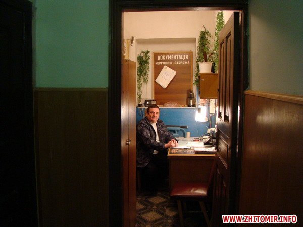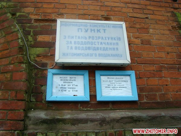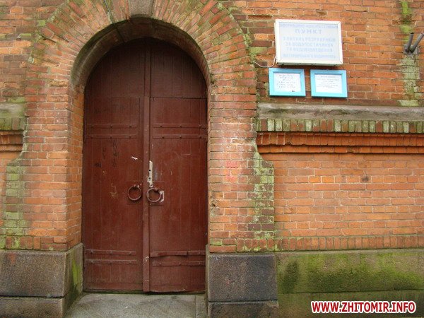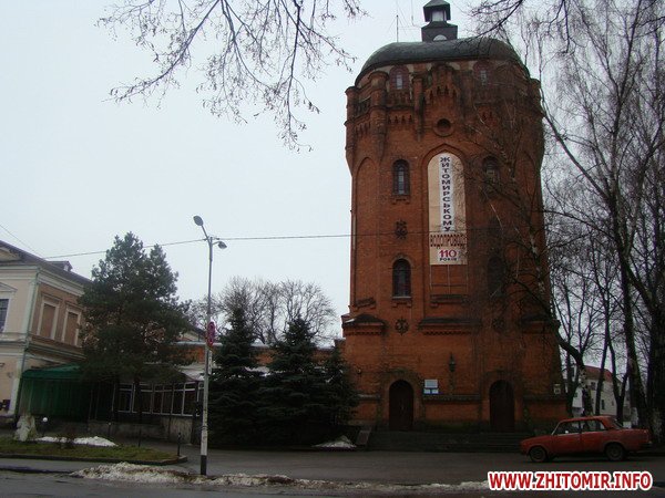 Наверное, каждый житомирянин хотел бы заглянуть за массивную дверь бывшей водонапорной башни, находящейся в Житомире по ул. Пушкина. С тех пор, как в городе построили новый водоканал на Корбутовке, эта башня перестала исполнять роль главного водоснабженца Житомира. Теперь здесь один из пунктов горводоканала, где контролер Татьяна принимает показатели счетчиков воды и дает разъяснения. Кроме отдела сбыта водоканала, в числе действующих здесь помещений – каптерка дежурного охранника и туалет. Остальные двери на запорах. «Хозяин» полупустого здания, охранник Григорий Григорьевич рассказал нам, что в советские времена здесь функционировали все три этажа. На первых двух размещалась администрация водоканала, на третьем стоял огромный бак, в который закачивали воду и подавали ее в квартиры горожан. Сегодня четыре сменяющих друг друга охранника следят за порядком в помещении памятника архитектуры, коим является водонапорная башня. Нередко здесь фотографируются иностранцы. Иногда к дежурным приходит старичок, лично знакомый с архитектором этого столетнего сооружения. Он любит рассказывать о тех временах, когда с тыльной стороны башни еще находилась городская пожарная часть.