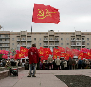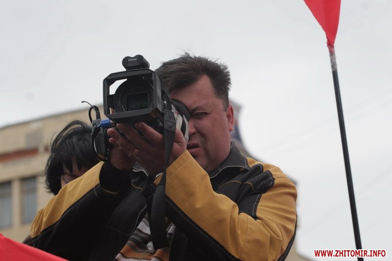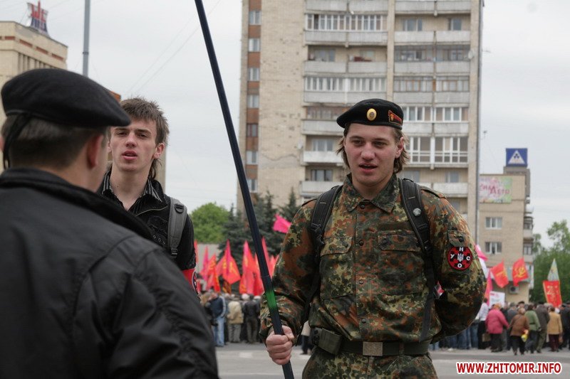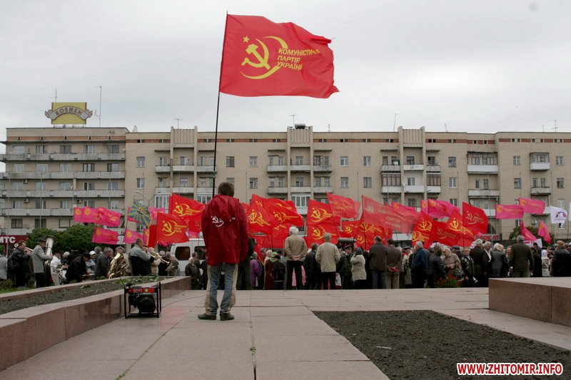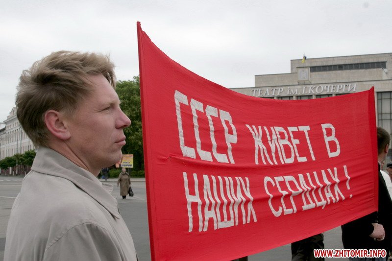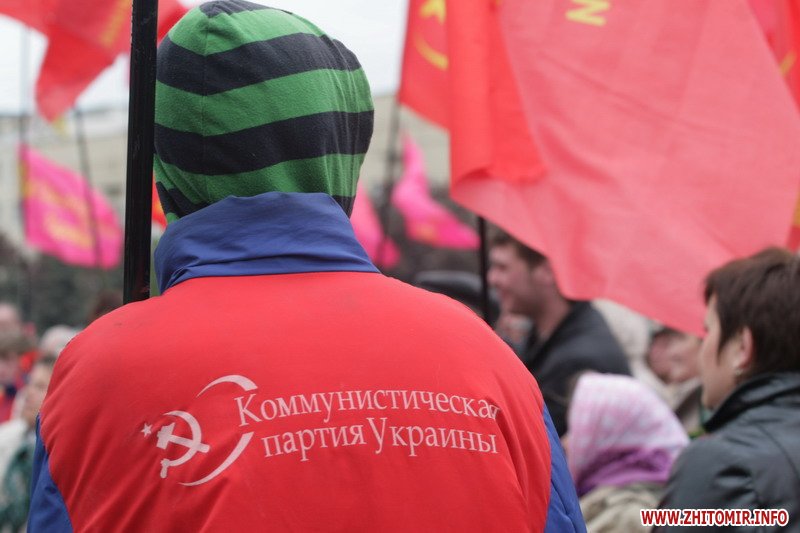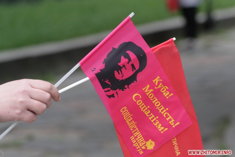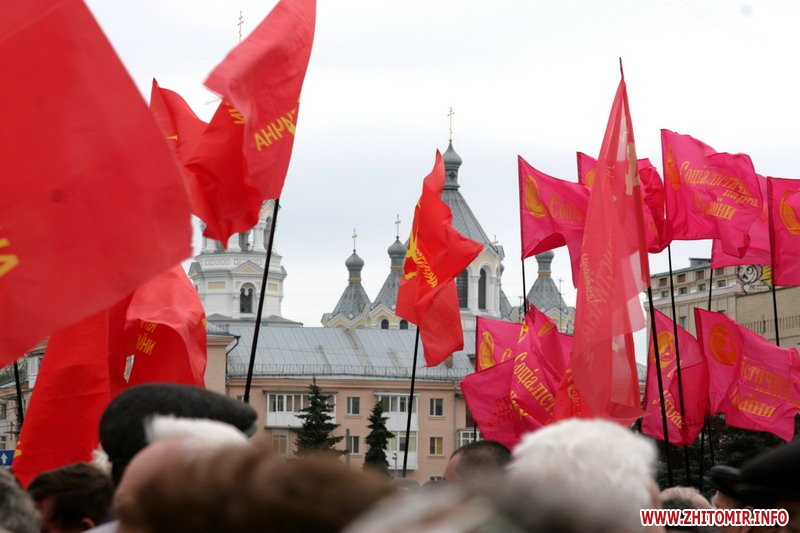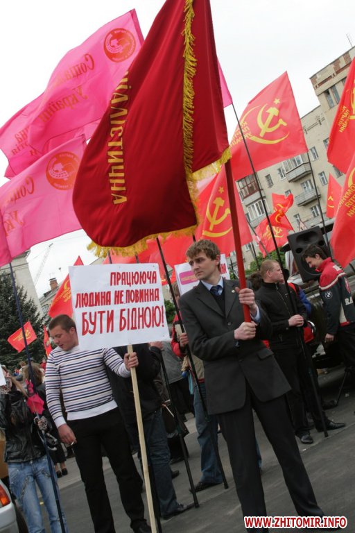 Несколько сотен сторонников левой идеи - коммунисты и социалисты провели митинг в центре города на площади Соборной по случаю Первомая. Участники митинга держали в руках флаги социалистической и коммунистической партий, плакаты "Геть олигархов!", "Владу під котроль народу!", "СССР живет в наших сердцах!" и другие.