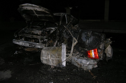 Около 2 часов ночи на улице Черняховского в Житомире автомобиль «Опель», двигаясь в направлении Майдана Соборного, совершил наезд на железобетонную опору освещения, после чего автомобиль загорелся.