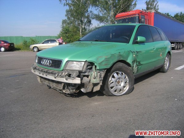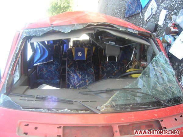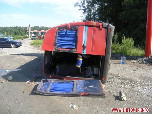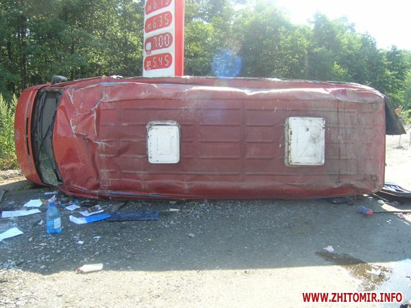 23 июля около 16 часов на 156 км. автодороги Киев - Чоп, Житомирского района, 44-летний водитель микроавтобуса VOLKSWAGEN LT 46, житель Ровенской области, двигаясь в направлении г. Ровно, нарушив правила обгона, осуществил боковое столкновение с автомобилем Ауди А-4, под управлением 34-летнего жителя России, который двигался впереди в попутном направлении, после чего не справившись с управлением, выехал на распределительную полосу, где совершил наезд на насыпь щебня и опрокинулся. В результате ДТП водитель и 11 пассажиров микроавтобуса получили телесные повреждения и доставлены в медицинские заведения, где после оказания медицинской помощи водитель и 4 пассажиров были отпущены домой. Об этом сообщает УГАИ УМВД Украины в Житомирской области.
