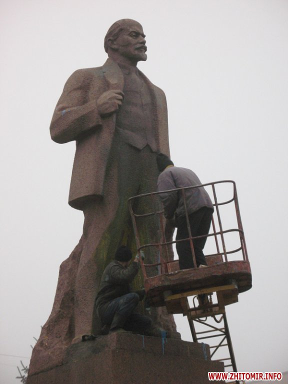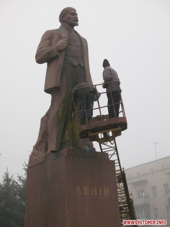 В Житомире осенью 2006 года неизвестные желтой и синей краской облили гранитное изваяние Ленина. Рабочие одного из коммунальных предприятий в течение дня отмывали его ацетоном (На фото). Следы краски до сих пор просматриваются на памятнике.