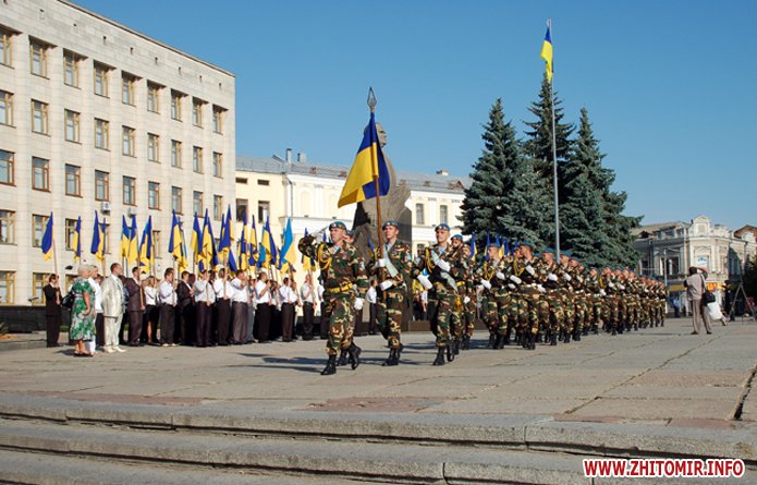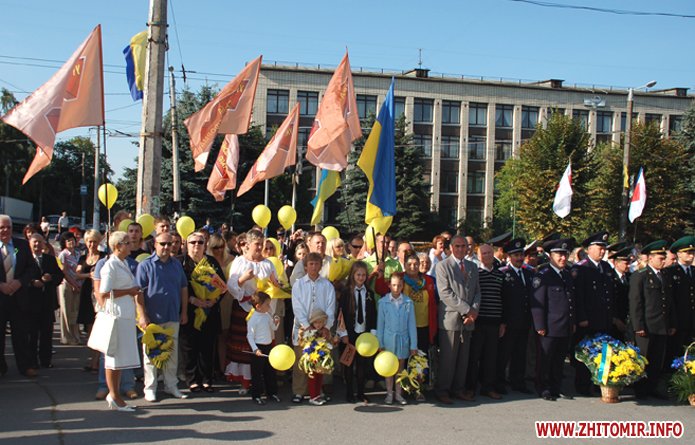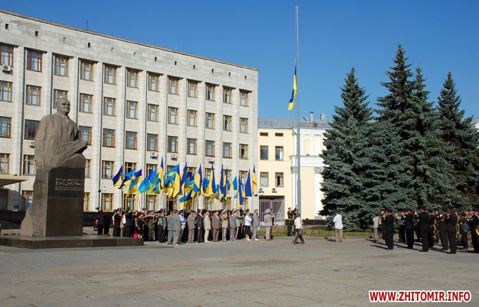 23 серпня у Житомирі пройшли урочистості до Дня Прапора та Дня Незалежності. На майдані С.П.Корольова за участі керівників області та міста, представників громадськості відбулася церемонія підняття Державного Прапора України. Потім урочистою ходою учасники заходу пройшли до пам’ятника Тарасу Шевченку, де відбулося покладання квітів та вручення паспортів громадянина України молодим людям, яким у серпні виповнилося 16 років.