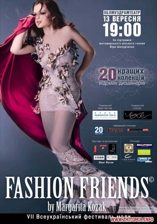 13 вересня 2009 року в приміщенні Житомирського обласного музично-драматичного театру ім. І.Кочерги планується проведення Сьомого Всеукраїнського Фестивалю Моди “Fashion Friends”. Фестиваль буде проходити в рамках святкування 1125 річниці міста Житомира.
