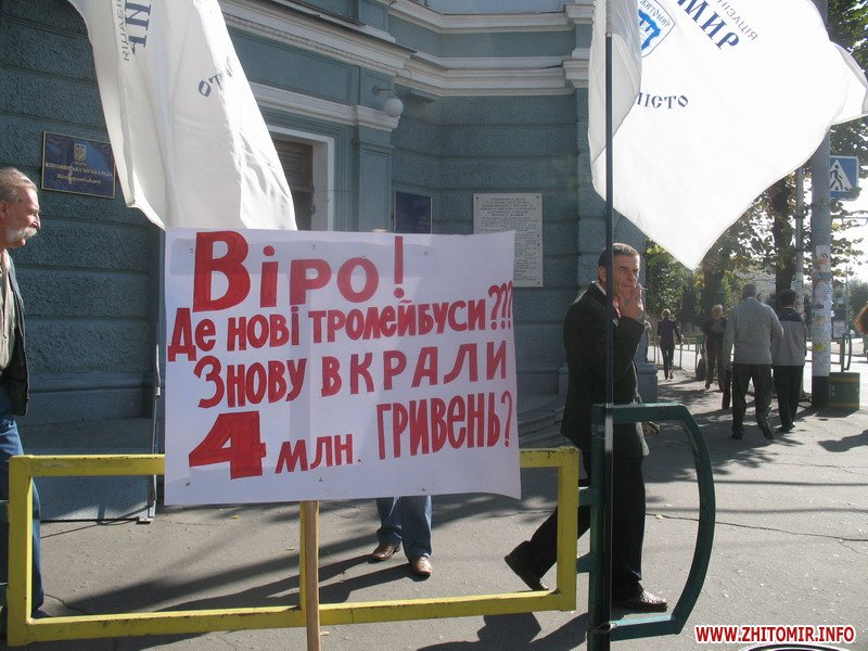 В Житомире около здания мэрии Житомирский БЮТ продолжил пикет, во время которого собирал подписи житомирян за отставку мэра города Веры Шелудченко.