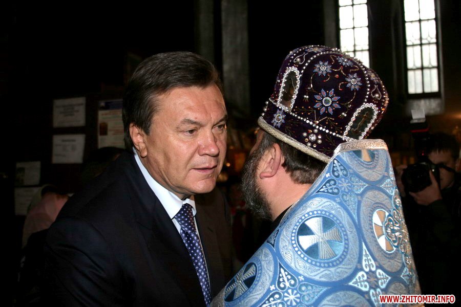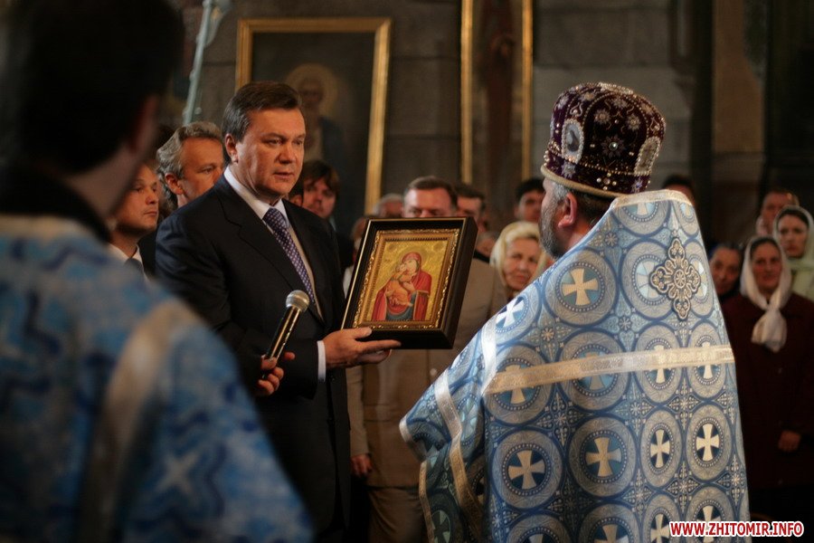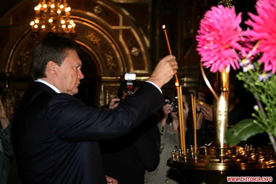 Около 10 часов утра Виктор Янукович и руководство Житомирской региональной организации партии молились в Спасо-Преображенском соборе.