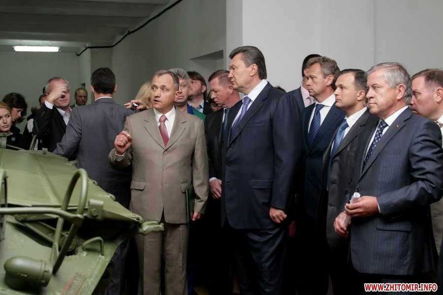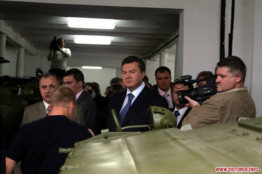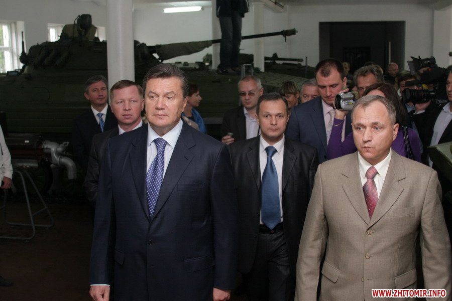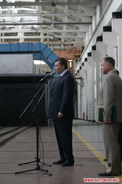 После молебна Янукович и сопровождающие его лица посетили Житомирский ремонтно-механический завод в Новогуйвинске.