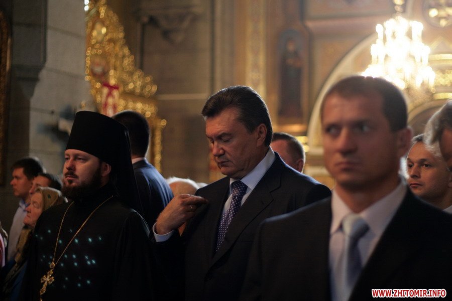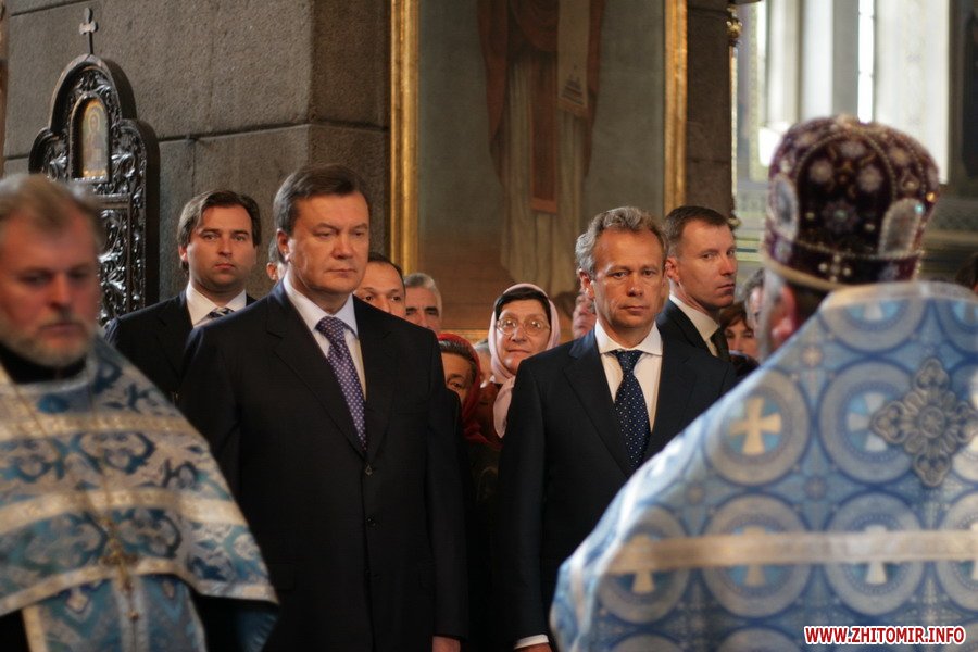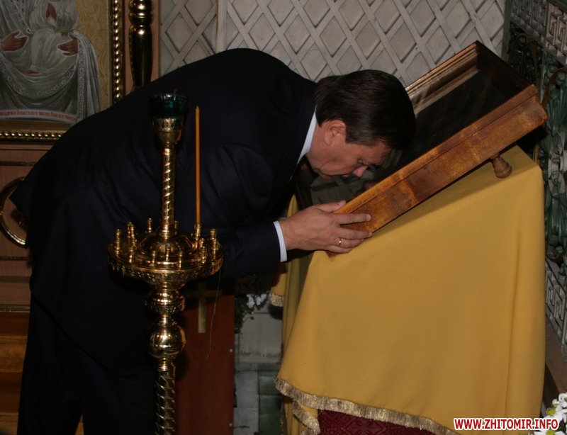 Около 10 часов утра Виктор Янукович и руководство Житомирской региональной организации партии молились в Спасо-Преображенском соборе.