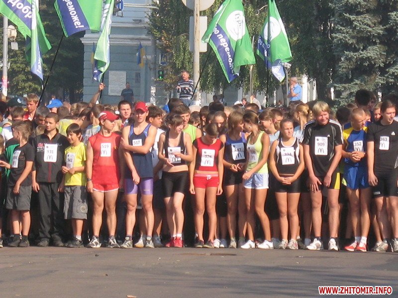 Второй день празднования Дня рождения Житомира. В 10 часов утра 13 сентября 1125 жителей города от мала до велика в честь Дня города пробежали кросс – 1125 метров по бульварному кольцу: от кинотеатра «Жовтень», далее - по Бульвару, и – назад.