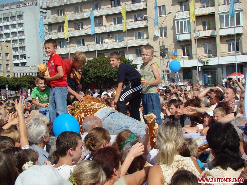 Как сообщал Житомир.info, специально ко Дню города в Житомире был испечен и разделен между всеми желающими кулинарный шедевр под названием «Рог изобилия», состоящий из 1125 кондитерских изделий 55 наименований.