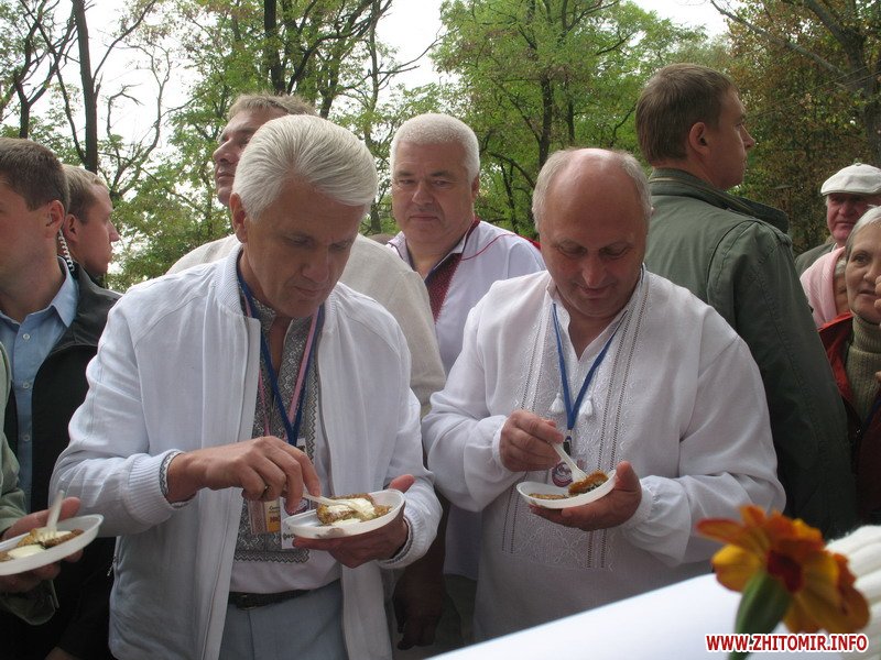 Кстати, мэр Коростеня провел на фестивале уроки по выпечке дерунов. Среди учеников был спике Владимир Литвин, который признался журналистам, что больше всего он любит деруны с сыром.