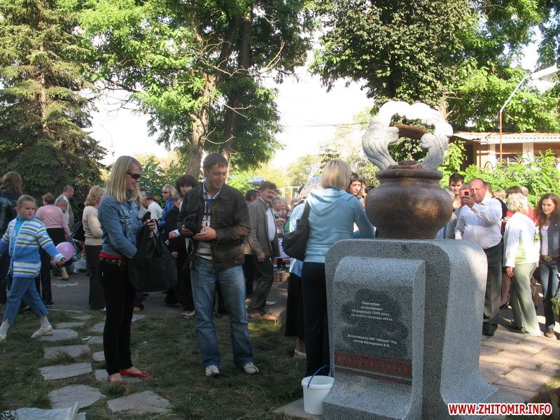 Памятник представляет из себя макитру с дерунами, установленную на постаменте из серого и красного гранита, добытого в Коростенском районе.